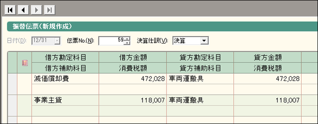 仮に、これしか固定資産がない場合は、このデータによって、決算時の仕訳を行います。