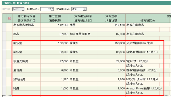 やよいの青色申告(経過勘定項目-見越・繰延)