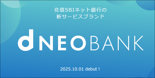 こんばんは。(#^.^#) 「住信SBIネット銀行」が10/1より「d NEOBANK」に変わるようです。 ドコモが住信SBIネット銀行を買収したことによる改名ですが、頭にドコモの「d」が付いて、その後ろは「NEOBANK(ネオバンク)」となるようです。 現在、Vポイント支店は「V NEOBANK」だし、ファイターズ支店は「F NEOBANK」だしって感じで、混乱しそうです。(;^_^A...