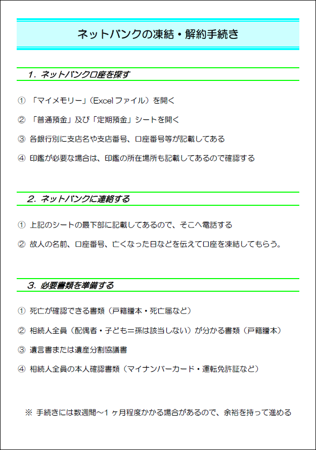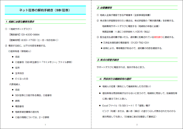 こんばんは。(#^.^#) デジタル遺産(その3)で、相続時にネット証券を解約する場合の要点等をまとめました。 ご参考になる方がありましたら、ご利用ください。 PDFファイルが必要な場合は、アップしますので、お気軽にご連絡ください。