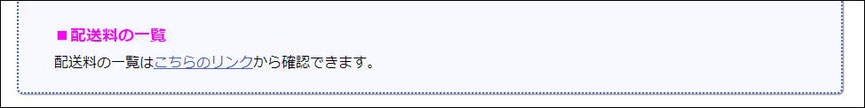 「こういう場合はいくら?」みたいな配送料金についての一覧表を作成させていただき、ショップのトップページの「お店からのご案内」の最後に追加(上図)をさせていただきました。