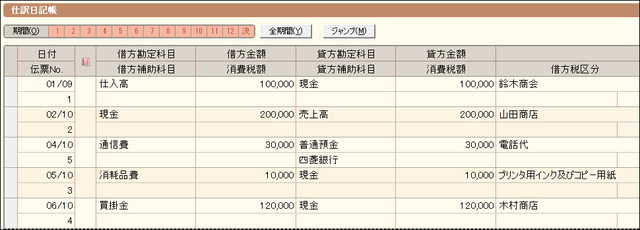 伝票№は、入力順に表示されるので、このように、先の日付を後から入力すると、番号が1.2.5.3.4などとなるのですね。