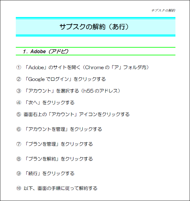 シニアライフ(サブスクの解約-Adobe